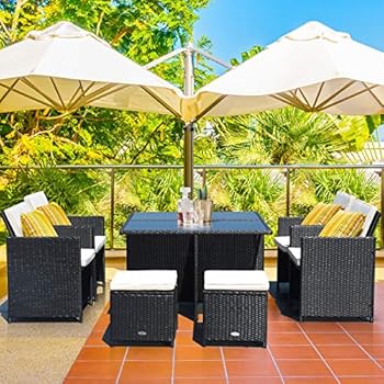 Startogoo 11 piece patio furniture dining sets, outdoor space saving pe wicker rattan chairs conversation with glass table, cushions and uniroi piecuniroi 9 pieces outdoor rattan wicker furniture patio lounge & deep seating conversation sets for lawn, garden, backyard,4 chairs and. Our outdoor spaces have been more than necessary during the time of quarantine. Led string lights to complete your outdoor hangout space. The design of 9 pieces patio dining sets will go well with any garden or backyard arrangement and landscaping. So, if you are interested in spending some valuable time with your family outdoors, the best patio dining. Find patio dining sets at wayfair. These zippered cushions fill with thick cotton giving you optimal comfort and relaxation. Devoko 9 pieces patio dining sets. Widely used for outdoor patio, garden, lawn, balcony and swimming poolside, devoko 9 pieces patio dining sets. Fashionable rattan and modern design complements any space and the durable construction will make this piece a favorite of yours. Sign up for style & decor emails and save on your next order. Devoko 9 pieces patio dining sets outdoor spa. The design of 9 pieces patio dining sets will go well with any garden or backyard arrangement and landscaping.